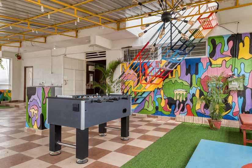 Fully-furnished co-living studios located at AECS Layout, Marathahalli. These studios have a floor size of 400 sq.ft which features one bedroom, open kitchen and attached bathroom, starting at ₹10000 per bed. Also includes Refrigerator, Sofa and TV. It comes with an exclusive lounge area and a game room with 65 inch TV + PS4, mini library, indoor games like carrom, card games etc. It also has a terrace with a beautiful view. Security deposit is only one months' rent. 24/7 Power Backup